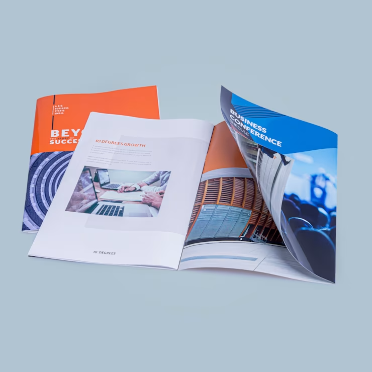 Geniete Brochures & Magazines zijn professionele drukwerkproducten die jouw verhaal ruimte geven, uitgevoerd met twee subtiele nietjes in de rug zodat de pagina’s netjes bij elkaar blijven. Je kiest zelf formaat, papier, afwerking en pagina-aantal (van 8 tot 64 pagina’s), waardoor ze ideaal zijn voor promoties, events, product catalogi, magazines of bedrijfspresentaties.