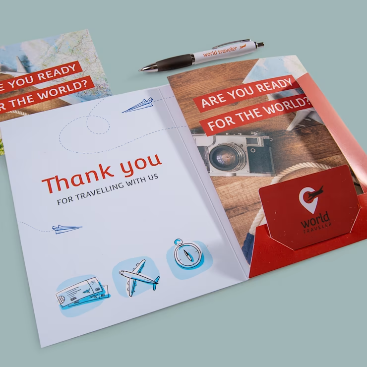 Tretten Sie professionell auf mit Ihren eigenen Angebotsmappen. Wir versehen die Angebotsmappen mit Ihrem Design, damit hinterlassen Sie garantiert einen bleibenden Eindruck. Wählen Sie aus verschiedenen Modellen und Veredelungen.<br />