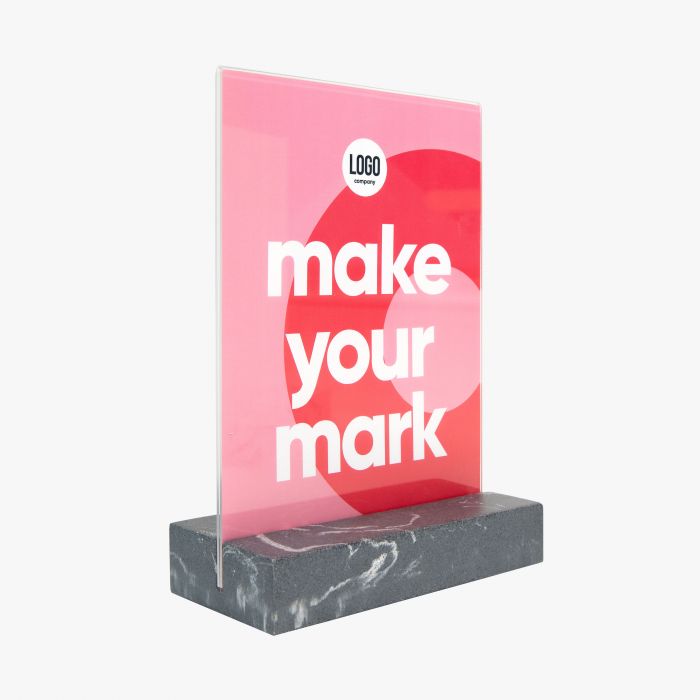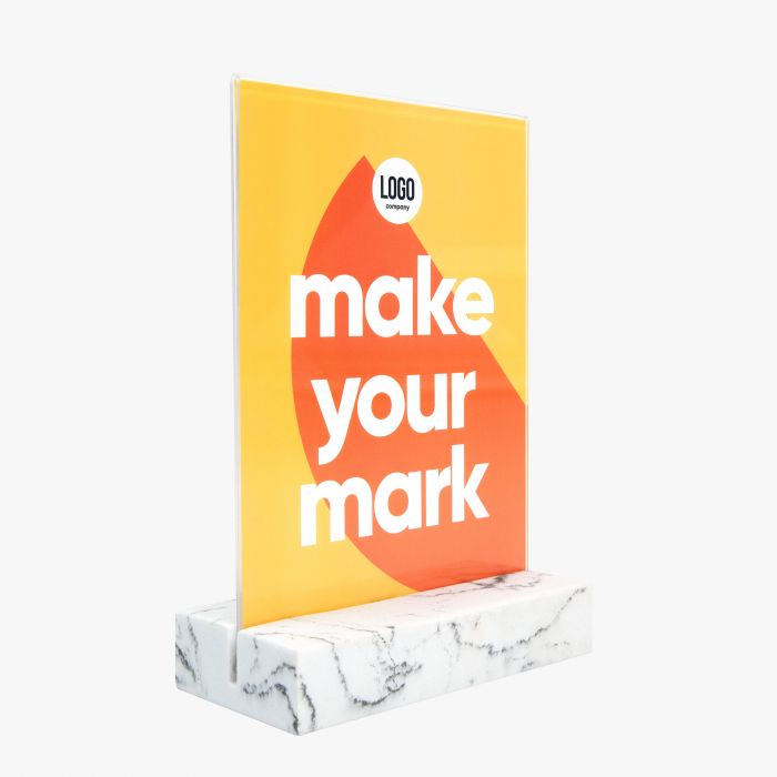 Kaarthouder met marmerlook is een stevig en stijlvol display-element gemaakt van acrylaat waarmee je kaarten, flyers of informatiekaarten overzichtelijk presenteert op balies, counters of displays. Door het robuuste materiaal blijft jouw drukwerk netjes zichtbaar en goed gepresenteerd.